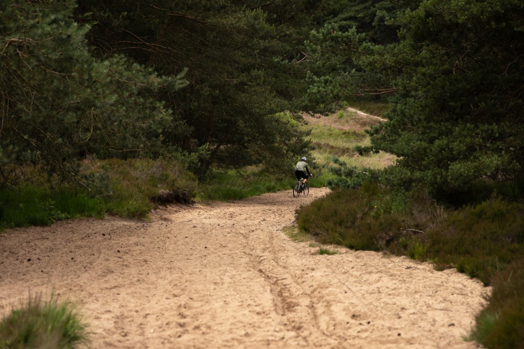 Op de Veluwe voert de route onder andere langs het Deelerwoud met z’n beroemde dode bomen – ook wel bekend als het nationale gravelmonument – de mooie Loenermark, het perfect gravel van Kroondomein het Loo en het sprookjesachtige Speulderbos. Toch verandert de route nog constant, door afsluiting van paden of het veranderen van toegangsregels in het bos. Vertrouw nooit op losse GPX-bestanden of oude gereden routes, maar fiets altijd de officiële Green Divide-route op mijn Komoot-profiel. Zo blijf je altijd op het juiste pad.